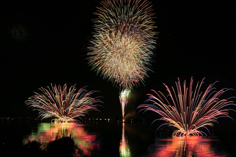 2尺玉からスタートし、ラストの「花鳥風月+2尺玉・3発」までの1時間、とても感激しながら見ていました。長岡花火などとは比べものにならない規模ですが、毎年8月25日は「ござれや花火」として楽しみにしています。